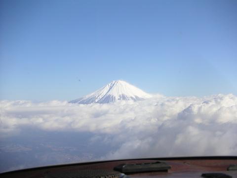 山の頂上を真横に見ながら岐路に着く。視程は100km以上かな。静岡辺りからア