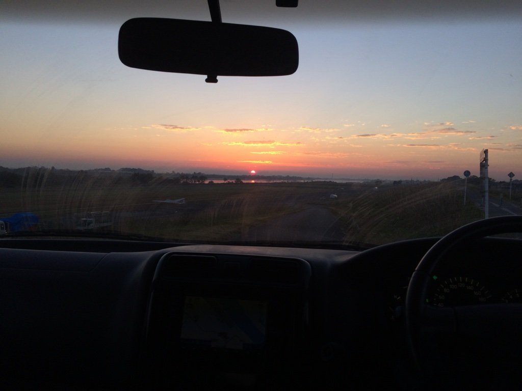 朝日が綺麗。忙しかったので車内からしか撮れませんでした。ぴえーん