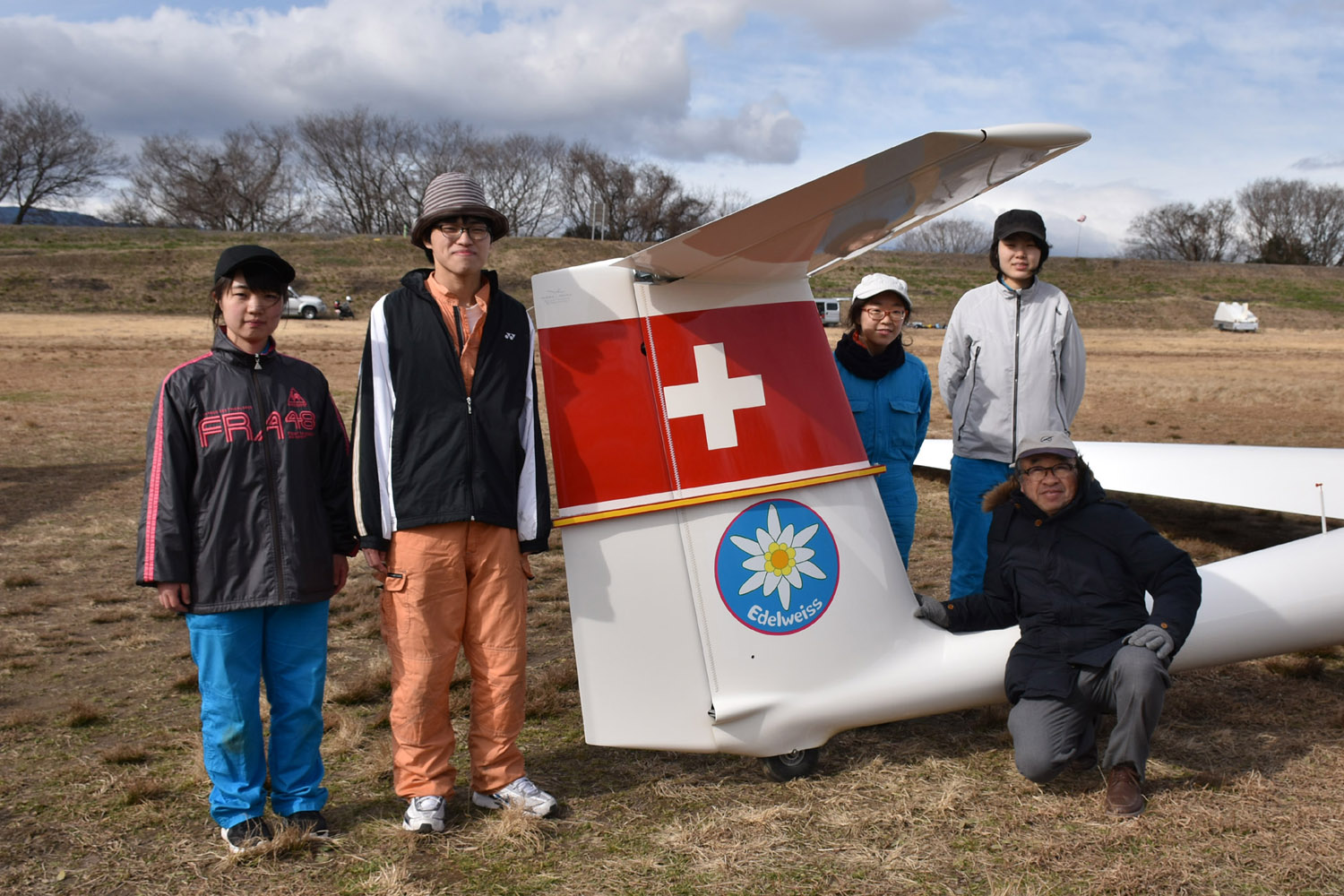 集合写真はスイス・アルプスで飛んでいた ASK21 ・ JA30GC の前でパチリ !!!