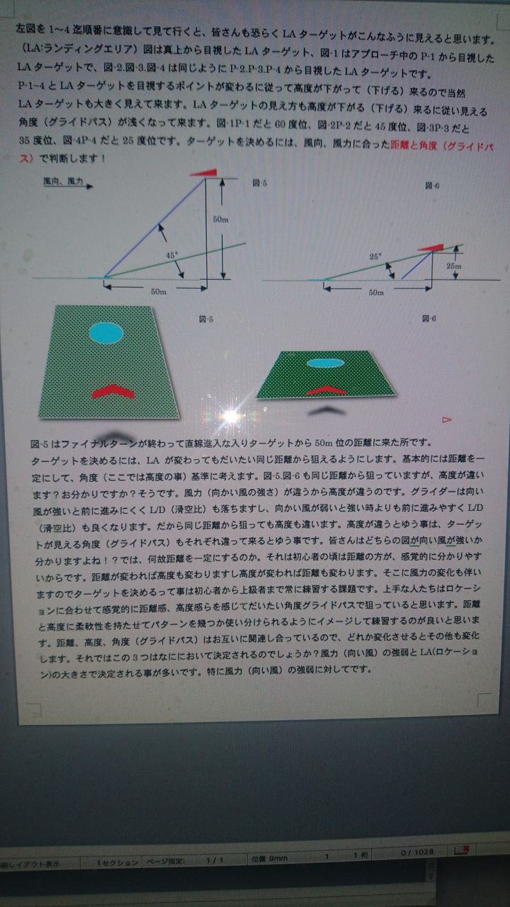 さて問題はLD。 https://www.youtube.com/watch?v=V-3-GMIxSNo 春の少し荒れた風の中。TOから見ている感じでは良かったと思いましたが微妙ですかね。。割とグライダーが揺れていますがコースは変えられずまずまずかな!?フレアータイミングが少し遅い(低い)ですね。その辺は本数と共に分かってくると思いますが、意識しておかないとね。 フレアーは何時も同じ高さ(ベースバー50~60cmの間です。この間にいいスピードに持ってくる(減速しつつ地面効果)ニュートラルスピードが基本になります。少し遅くても構わない)同じ対気スピード、風力に合わせた掛け方。浮き上がってもかけた姿勢を絶対変えない!