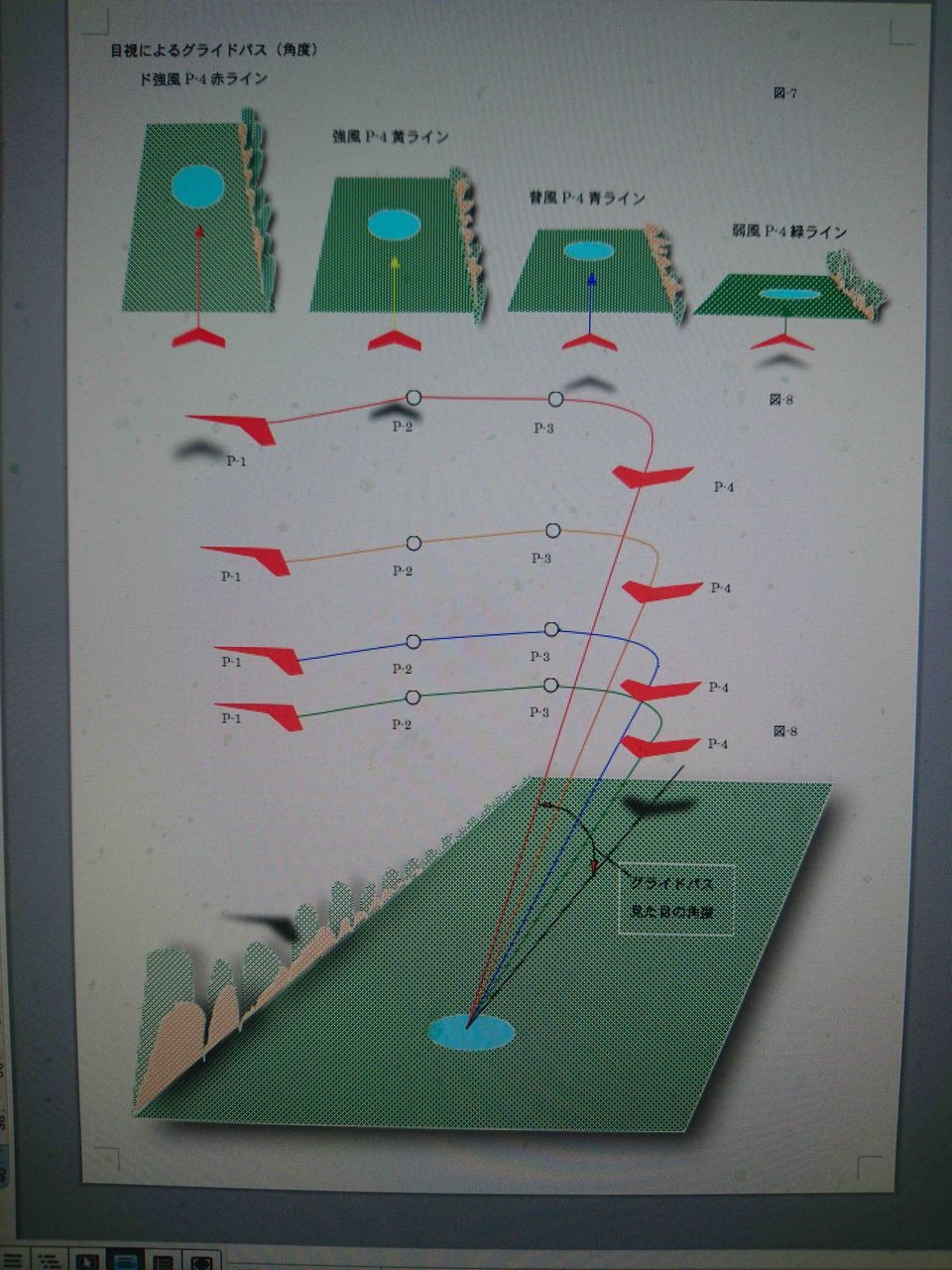 LD上空でLDの情報を確認(風向風速確認、アプローチのイメージ、距離感高度感、目視によるグライドパス、TGの目視、何処のポジションでどの位の高度でファイナルターンをするか、荒れているか等等)