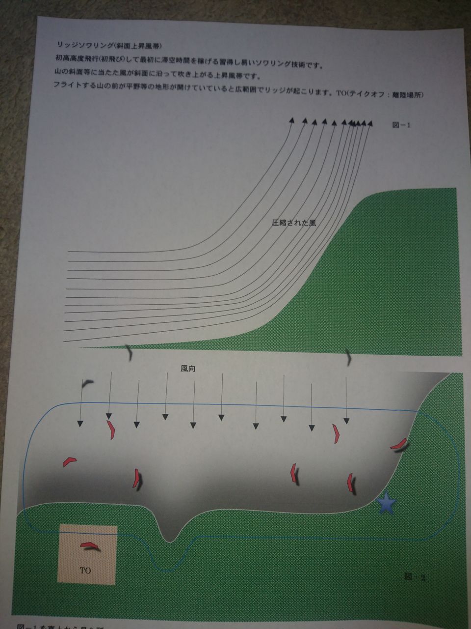 確かにリッジ&サーマルじゃなくてサーマル&リッジなので右に行くだけでは上昇して行かないのでね。風自体は弱かったので。だから右に行く時に斜面から同じ距離(間隔)をキープする事が重要です。目線も ( 目視する場所も重要です図の⭐️印しかな )