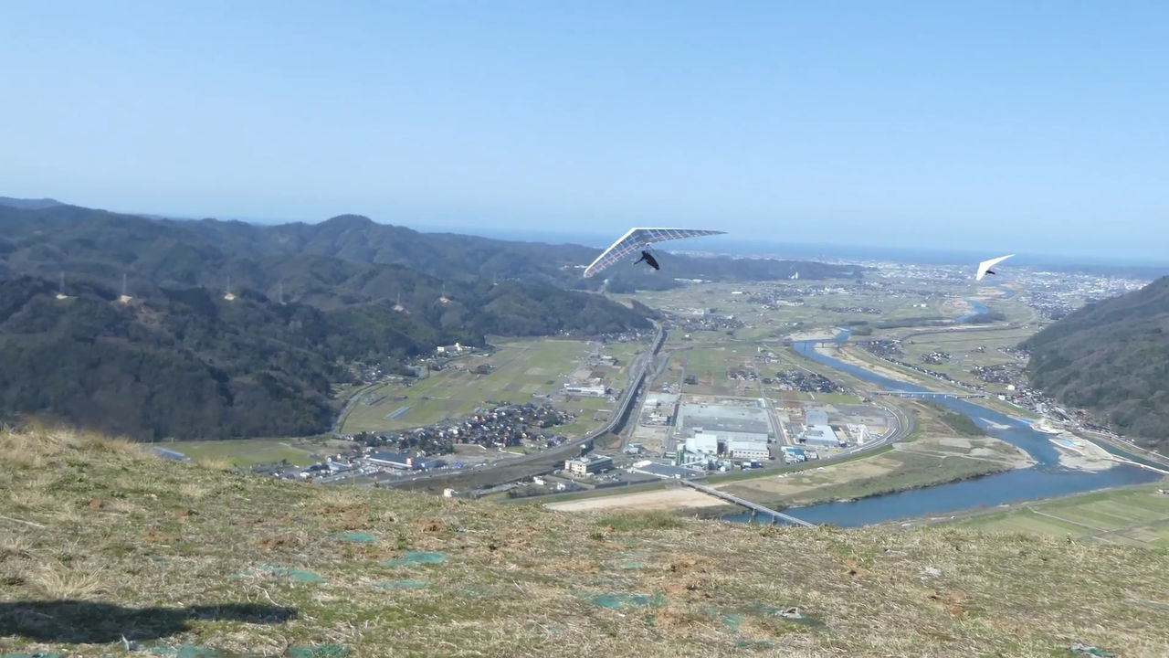 (みなさんに。春の霊石山TOは蹴り出してからも注意です。直ぐにサーマルに当たりやすく、ノーズから入ってくれれば良いのですが、どちらかの翼から当たると結構な勢いでグライダーが回されますので最低3秒間は直線飛行をですね)