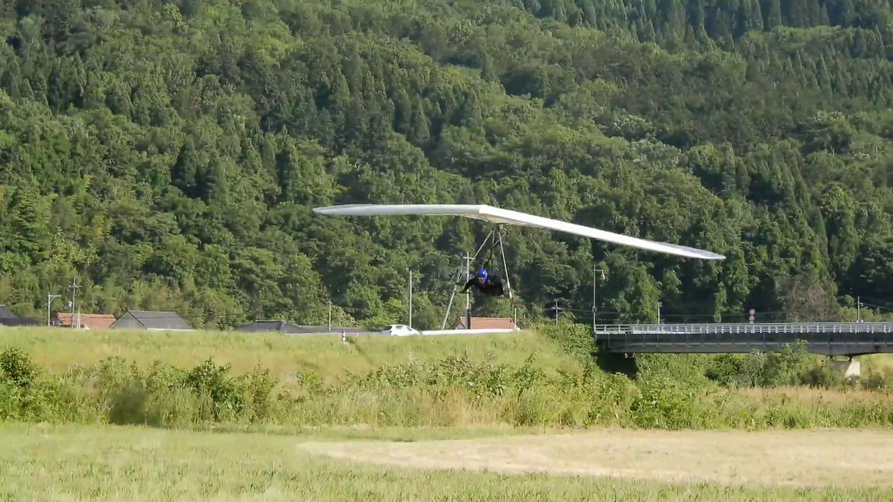 龍太郎!TO https://www.youtube.com/watch?v=44f2W-4t7Jg 微妙かな!?これも左翼先行していますよね、( 動画 0:01の間に )見事に右側にグライダーを向けられています。風が強い割に良い風みたいで、蹴り出してから落ちこむ事もなく素直に上がっています。ラッキー!