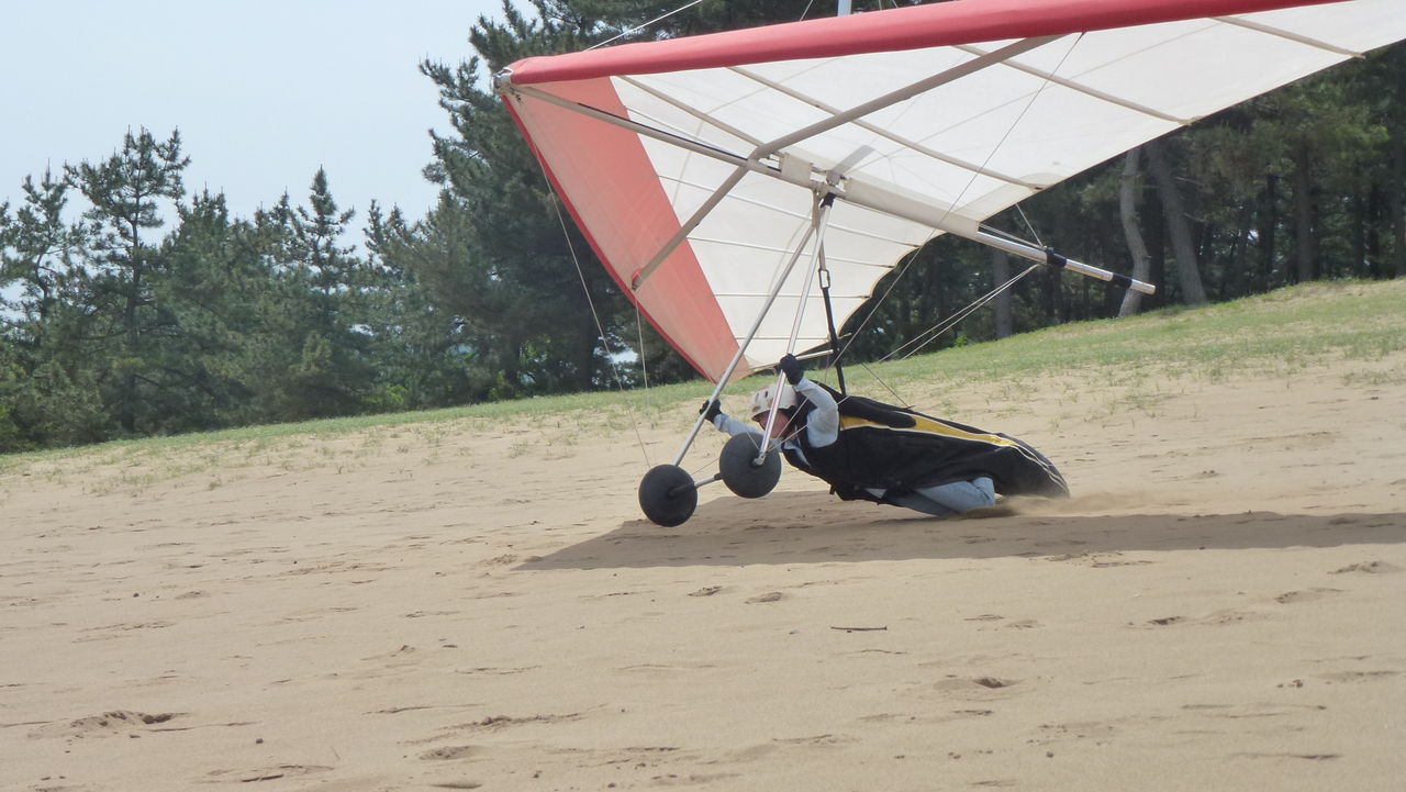 ( 続けていればこんな事もあります。出来るだけ慎重な風の判断も重要ですが、こんな事になった時もグライダーの左右バランスを崩されないような冷静さと反射的な動作が必要ですね )