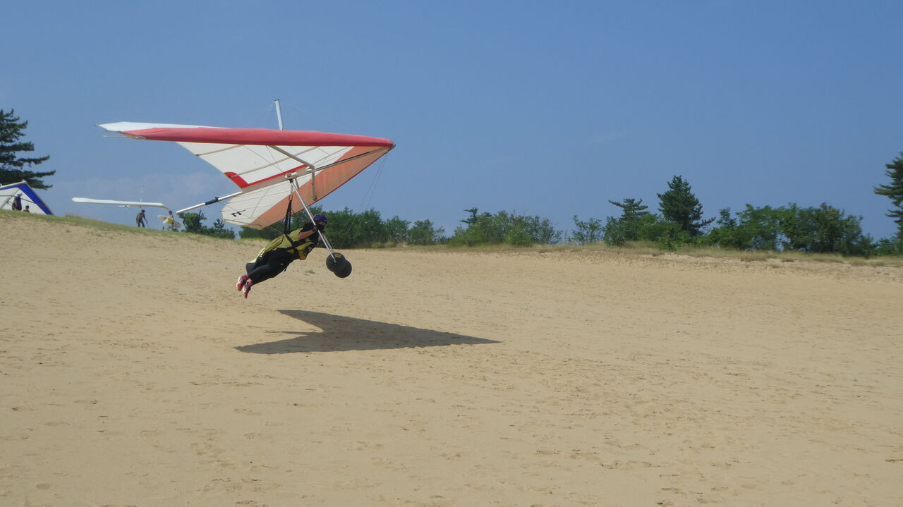 難しいねぇ。 ( フレアー後浮き上がった時の姿勢も重要です。上半身はそのまま 姿勢を変えないが基本です。 どうしても上半身を後ろに反る。片足を出してしまうとグライダーの重心とフライヤーの重心の相関関係で浮き上がりが止まったグライダー重心がフライヤ重心より前に行くのでその為グライダーがどうしてもノーズから下がるように思います ) この動画を見ると微妙なんですがフレアーする高さは良いと思いますし写っている吹流しも正面から吹いていないし、何故そこまで浮き上がるか