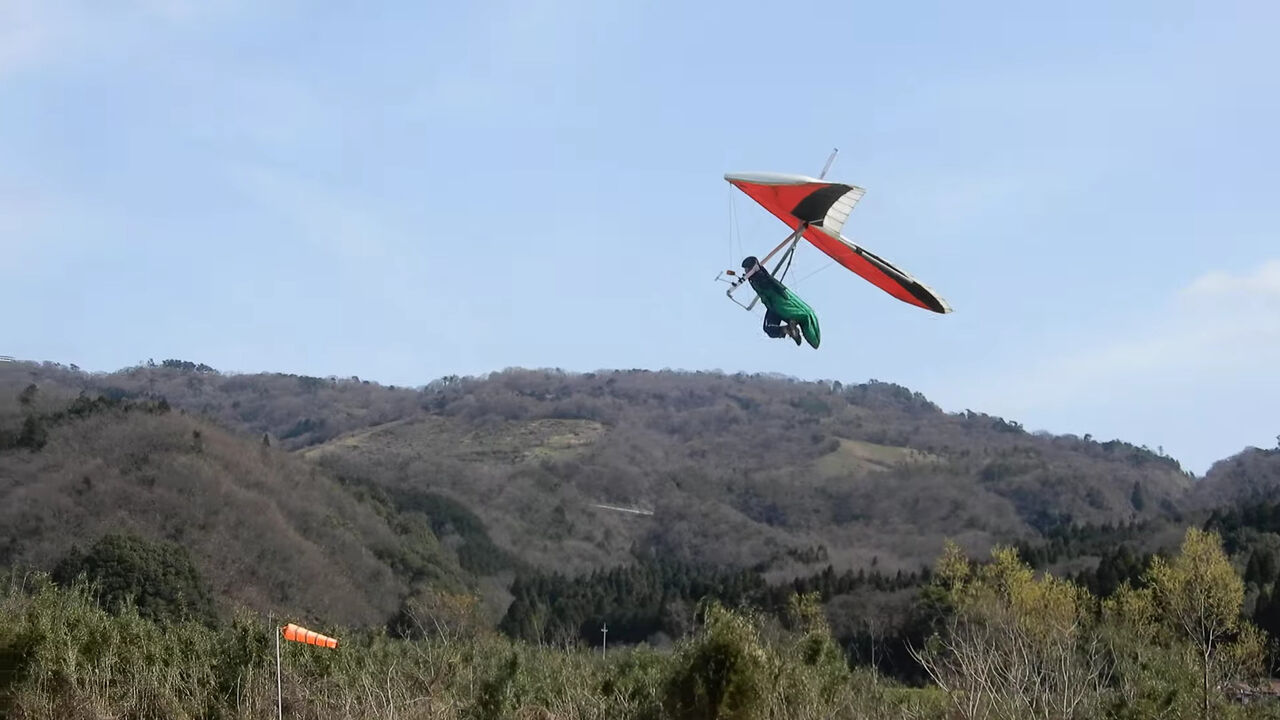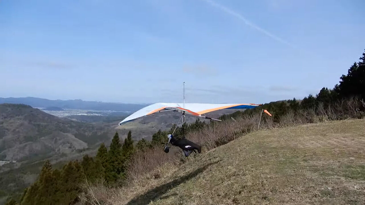 オーバーヘッド。2本目にしては微妙かな。割とグライダーも揺れているし。 アップライト持ち変えをスカるのは高度がないので大変危険ですよ。 1本目でスカるなら アップライト目視 してから持ち変えて下さい。頑張りましょう