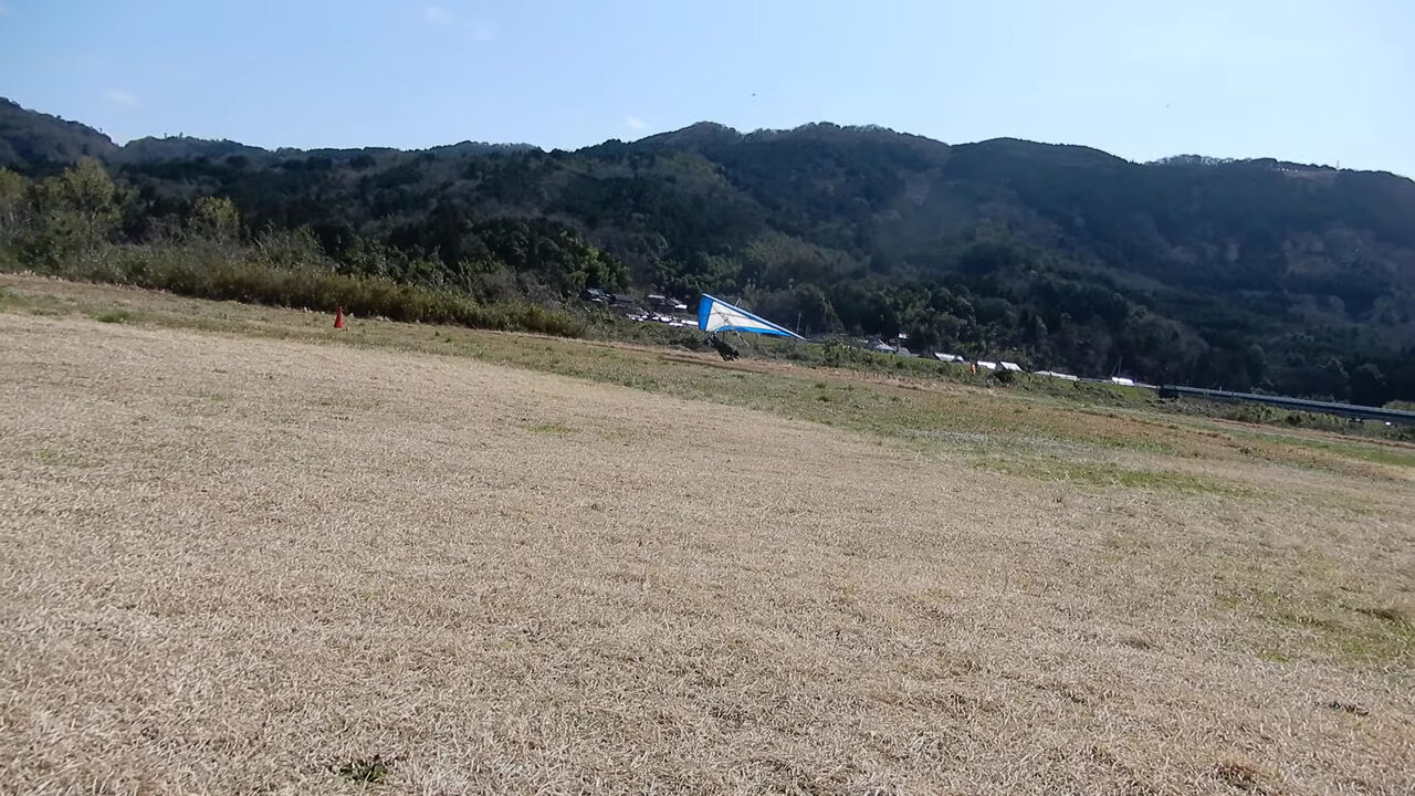 1本目のフライトは少し荒れ気味の条件でした。リッジが取れるほど風は吹いてなかったです。