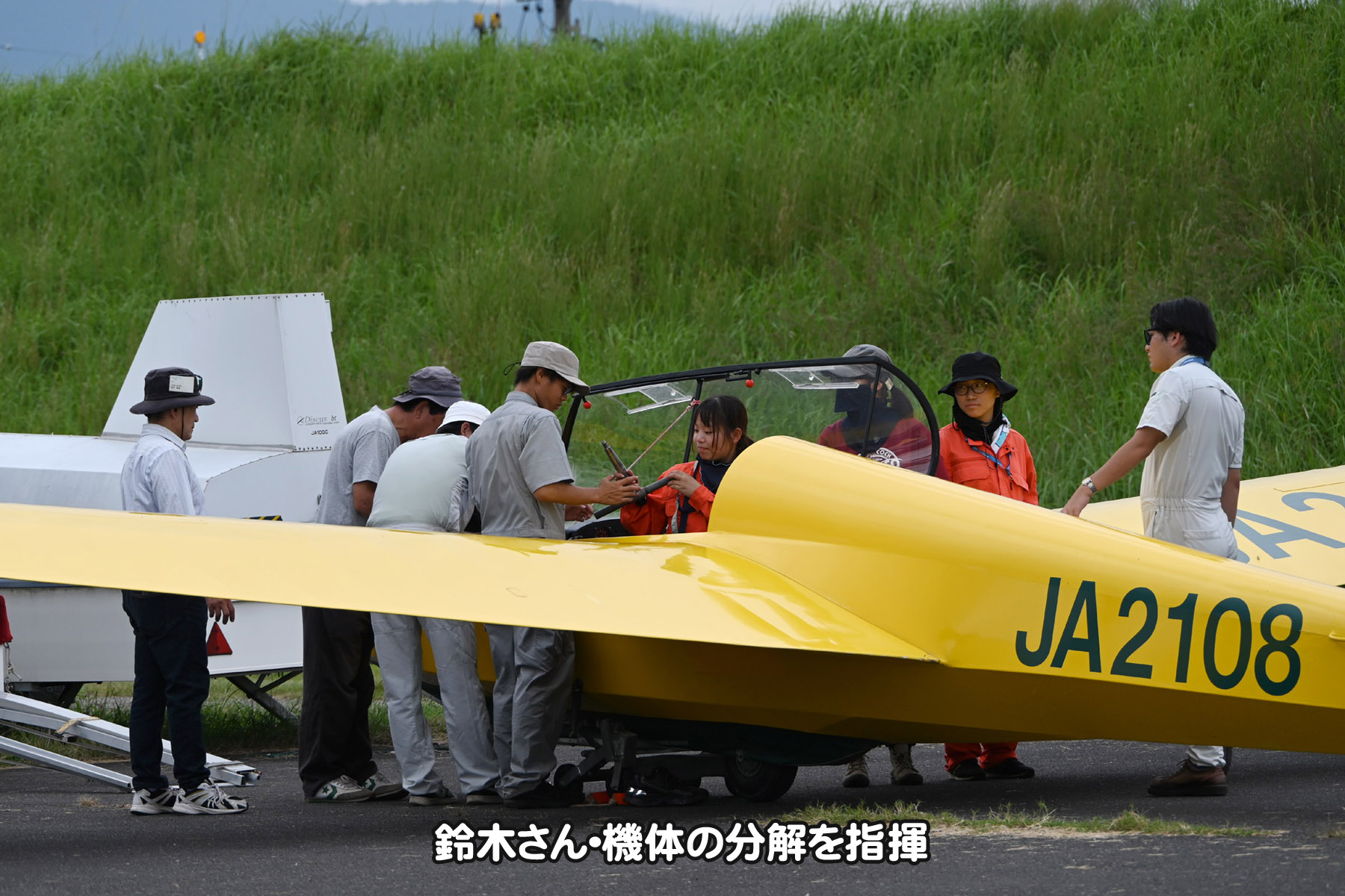 13係の認定を受けた 3年生の鈴木さんは、ASK13 の組立と分解の指揮を行っていました。29日には 4年生の 大塚君 が後輩たちを激励に来てくれました。