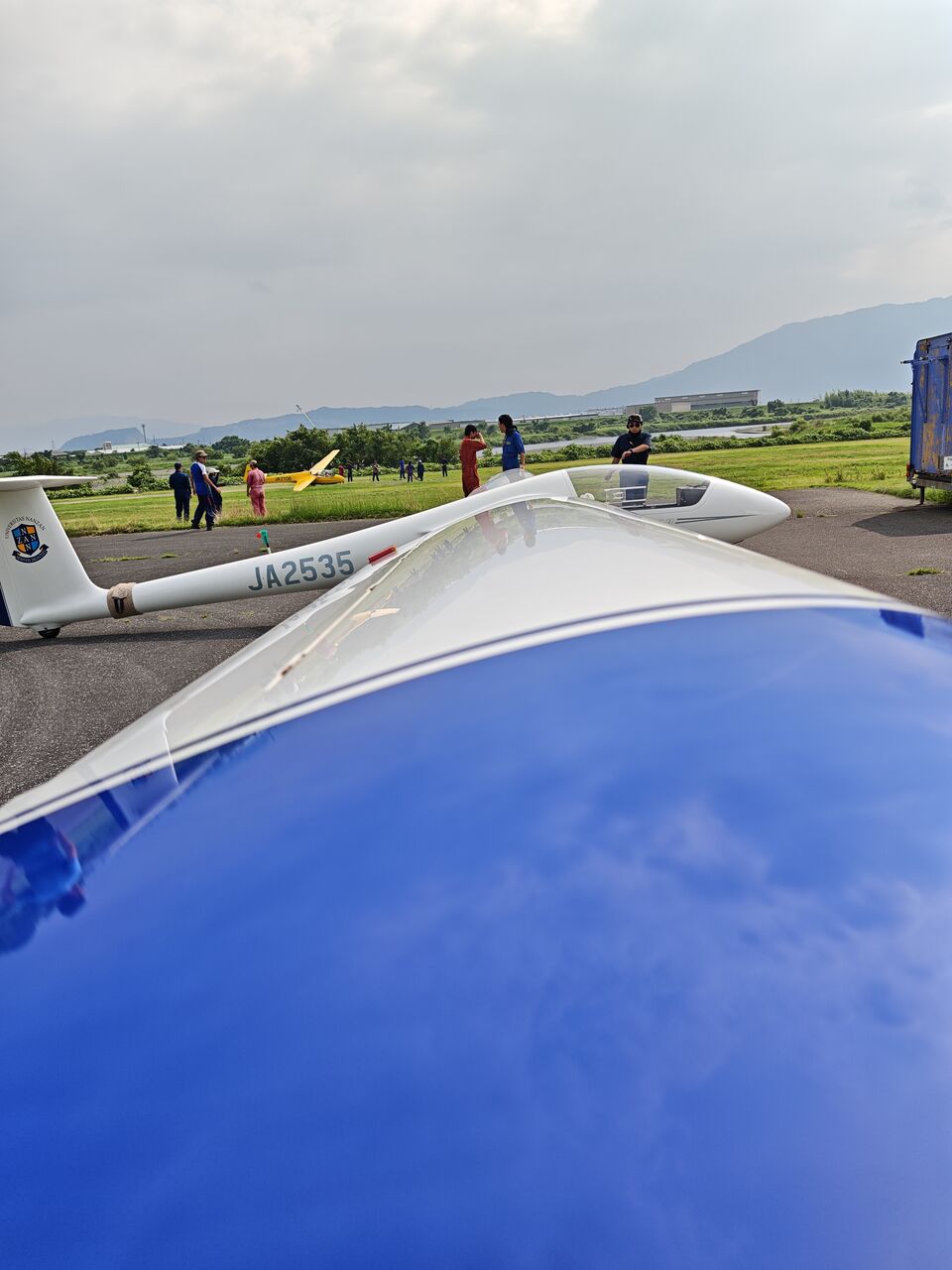 今回の合宿は気温が非常に高く、こまめに休憩を挟みながらの活動となりました。自分は、入日にはウェザブリを担当させていただきました。1日目には2回飛ぶことが出来ました。2日目は飛ぶことはできませんでしたが、先輩方からランウェイワークを丁寧に教えていただき、独り立ち項目もかなり埋めることができました。次回の合宿では、独り立ちできるようにさらに頑張っていきたいと思います!