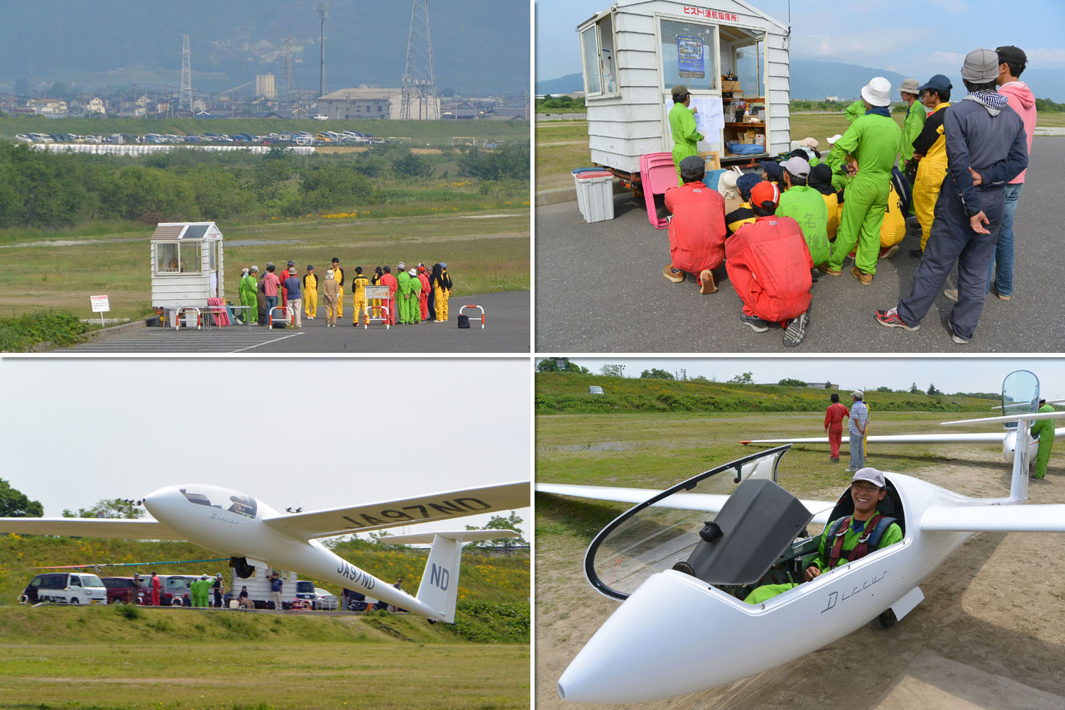 OGC 会員の集合時刻には既に、昨日と同じ JA2108、JA2535、JA21ND、JA97ND のラインナップ完了、8:32 に北向きでフライトを開始しました。風向が変わる前に名大 2回生・達くんの初 Discus が有りました。